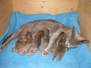 Lola mit 6 Kitten