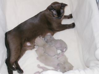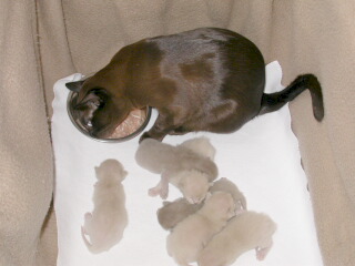 Desdemona mit Ihren 1 Tag alten Kitten: