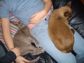 Volita kuscheln bei Melina und werden noch von Melvin gestreichelt.
