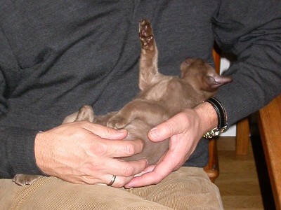 wohl auf dem Arm seiner zukünftigen Besitzerin.