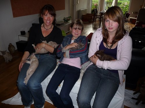 Martina mit Lilly und Luna im Arm, Dana mit Loulou und Alina mit Lizzy.